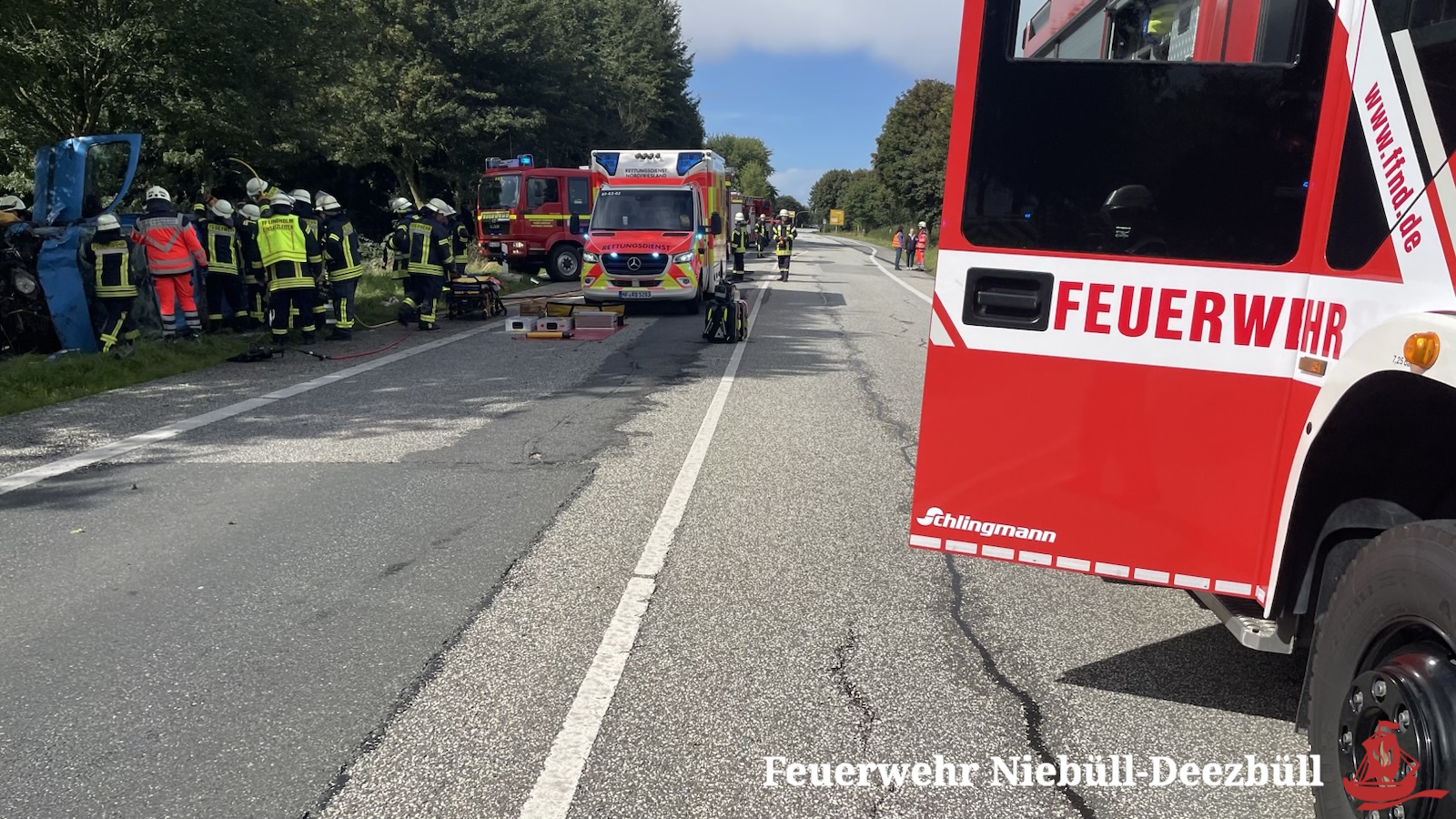 Die Feuerwehr Niebüll-Deezbüll wurde gemeinsam mit den Feuerwehren Lindholm und Risum zu einem Verkehrsunfall auf die B5 alarmiert. Vor Ort hat sich ein Pkw mehrfach überschlagen und ist auf der Fahrzeugseite zum stehen gekommen. Der Fahrzeugführer wurde im Fahrzeug eingeschlossen. Die Feuerwehr Lindholm hat die Person in Abstimmung mit dem Rettungsdienst aus dem Fahrzeug befreit. Die Feuerwehr Niebüll-Deezbüll ist mit Personal und Gerät in Bereitstellung verblieben.