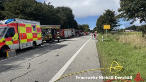 Mit im Einsatz waren die Feuerwehr Lindholm und Risum. Der Rettungsdienst Nordfriesland mit RTW und NEF sowie die Landespolizei.